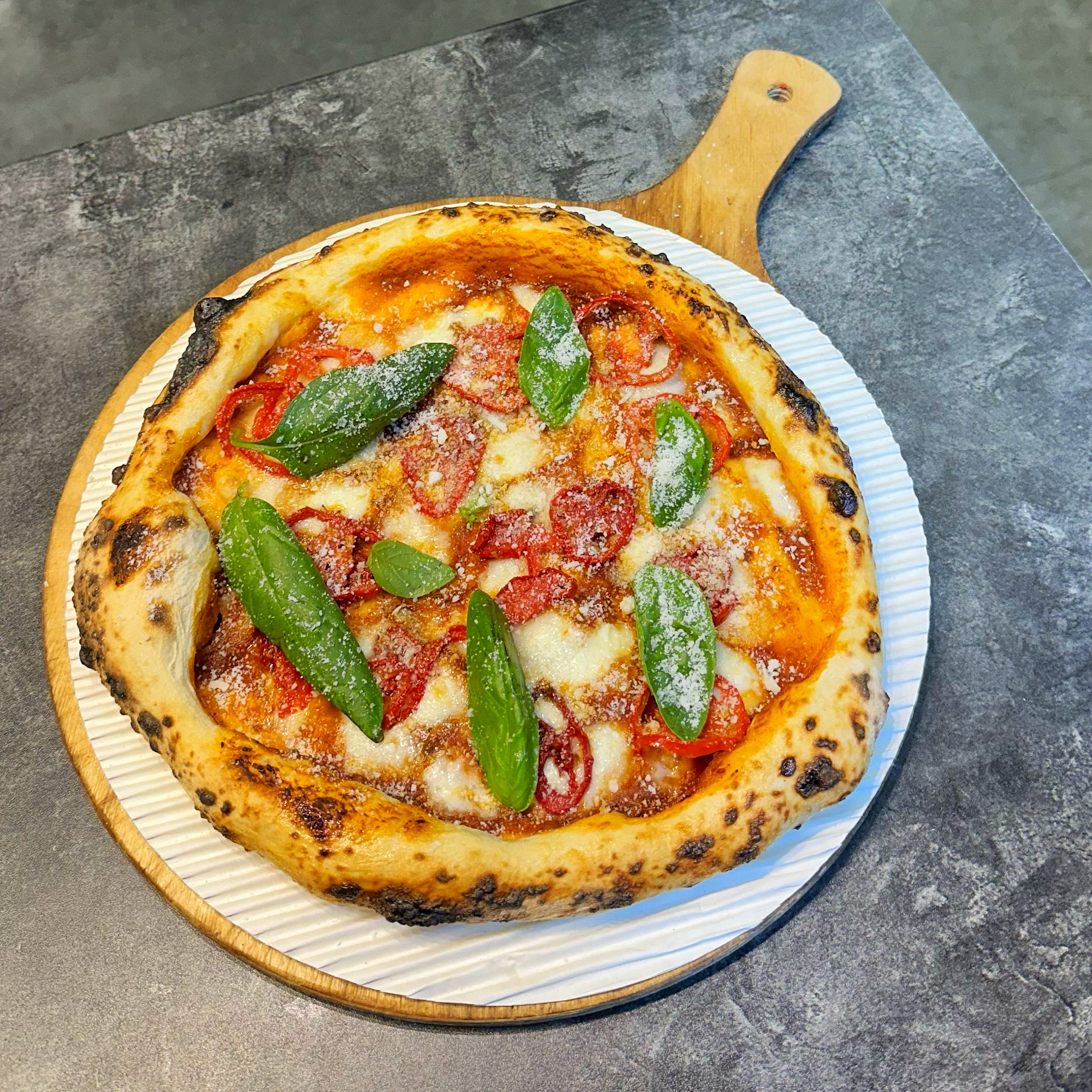 ترکيبات: پنير موزارلا، سس ماريانا و برگ ريحون